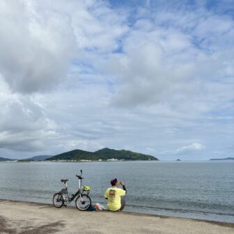 【大学生の休日 in 糸島】今日はノルバイ糸島のガイドさんとサイクリング!かわいい電動アシスト自転車で、運動が苦手でもラクラク。あいにくの曇り空だけど…