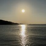 最初に訪れたのは細石神社。澄んだ水面に揺れる色とりどりの花は、朝の光を受けてひっそりと輝く。眺めていると、犬の散歩をしていたマダム二人とすれ違った。こちらから挨拶すると、名古屋出身だと教えてくれて、思わず会話が盛り上がる。同郷というだけで、旅の景色がぐっと近くなる。別れ際にみかんまでいただき、今日のサイクリングは良い一日になると確信した。